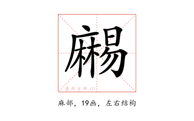 〔𪎥〕字是左右结构,可拆字为“麻、易”。