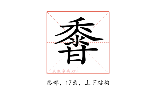 〔𪏽〕字部首是黍部,总笔画是17画。