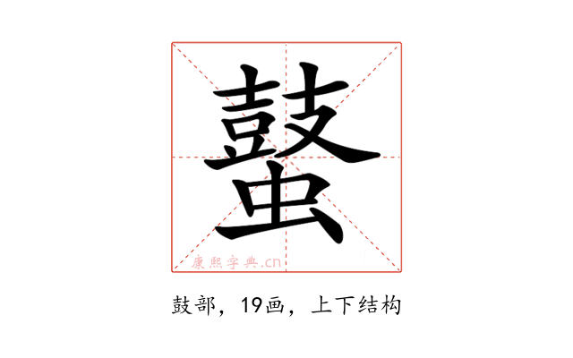 〔𪔖〕字是上下结构,可拆字为“鼓、虫”。
