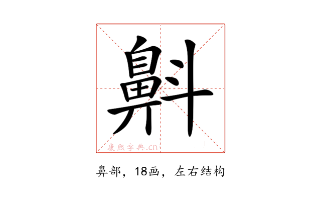 〔𪖘〕字是左右结构,可拆字为“鼻、斗”。