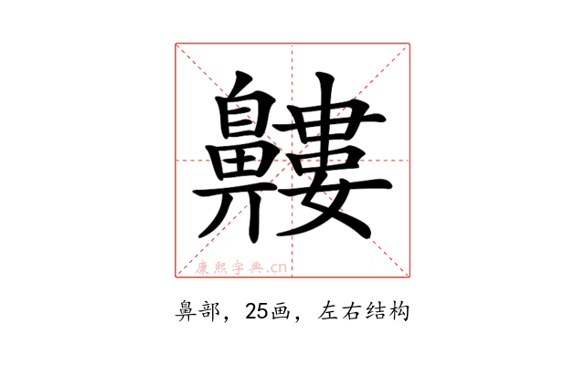 〔𪖹〕字拼音是(lóu),部首是鼻部,总笔画是25画。