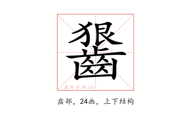 〔𪙈〕字是上下结构,可拆字为“狠、齒”。