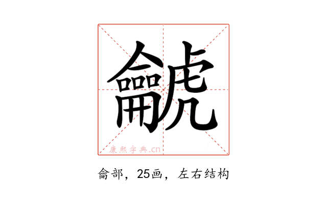 〔𪛌〕字是左右结构,可拆字为“龠、虎”。