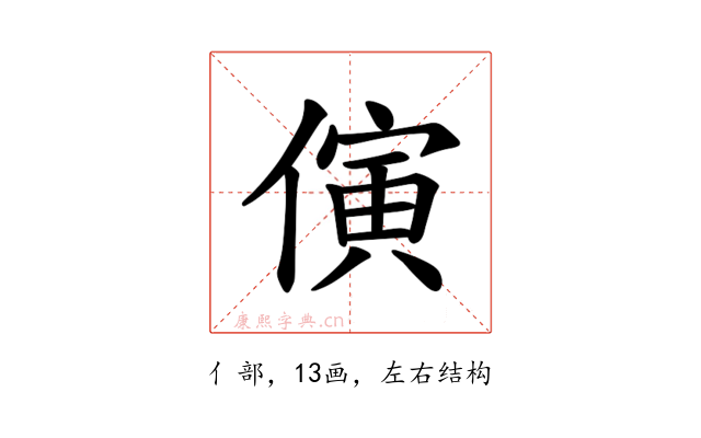 〔𪝤〕字是左右结构,可拆字为“亻、寅”。