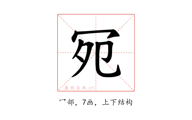 〔𪞏〕字是上下结构,可拆字为“冖、夗”。