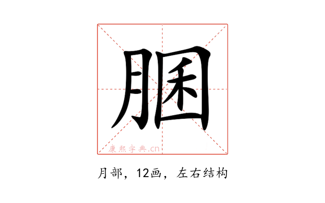 〔䐃〕字是左右结构,可拆字为“月、囷”或“⺼、囷”。