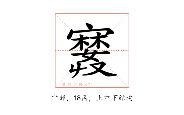 〔𪧲〕字部首是宀部,总笔画是18画。