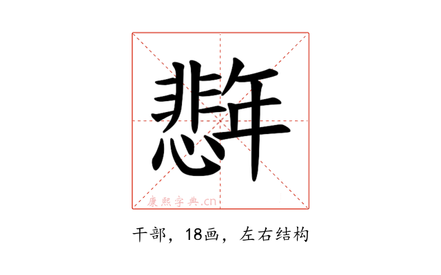 〔𪪈〕字是左右结构,可拆字为“悲、年”。