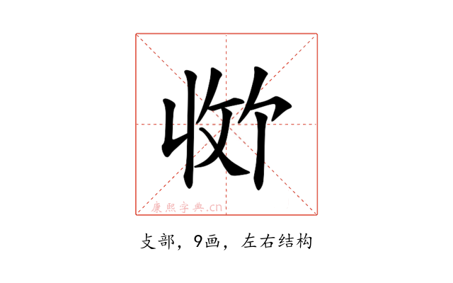 〔𪯊〕字部首是攴部,总笔画是9画。