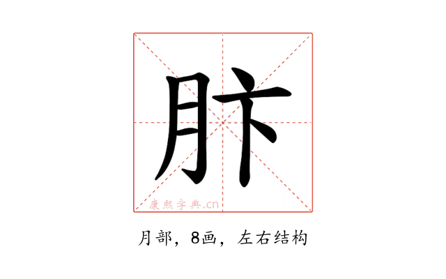 〔𫆘〕字是左右结构,可拆字为“月、卞”或“月、十、丶”。