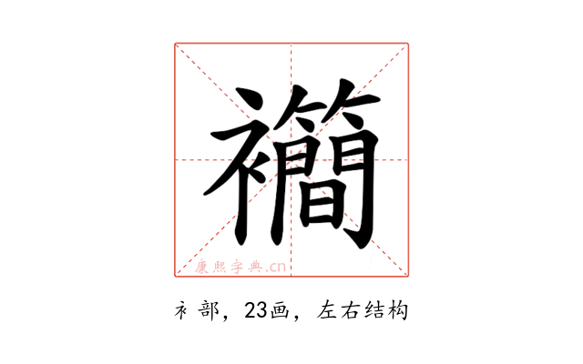 〔𫌙〕字拼音是(jiǎn),部首是衤部,总笔画是23画。