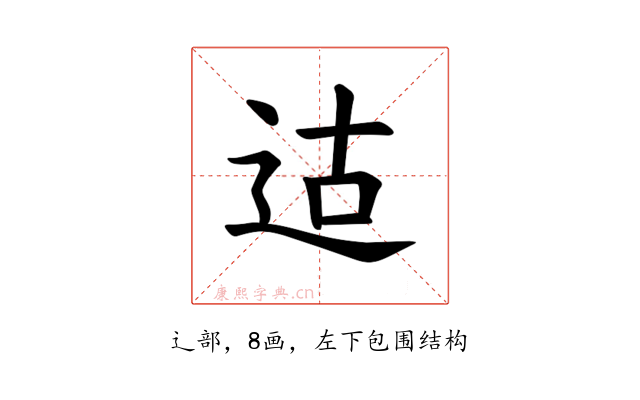 〔𫐢〕字是左下包围结构,可拆字为“辶、古”。