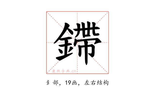 〔𫒿〕字是左右结构,可拆字为“金、帶”或“釒、帶”。
