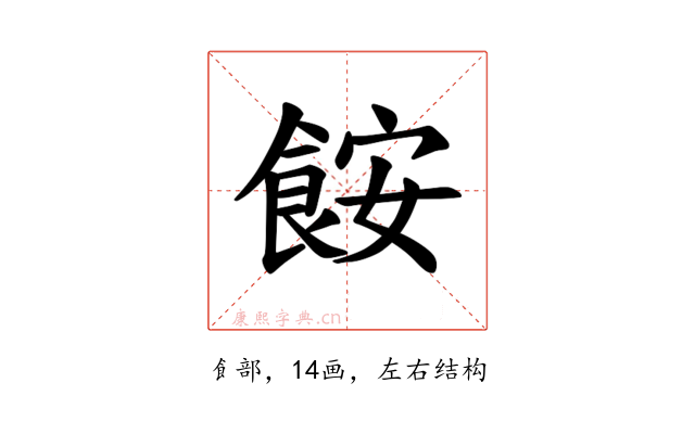 〔𫗒〕字是左右结构,可拆字为“食、安”。