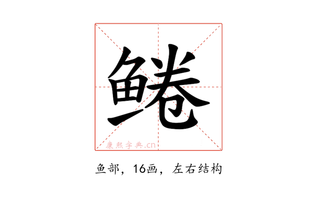 𫚠〕字是左右结构,可拆字为“鱼、卷”。