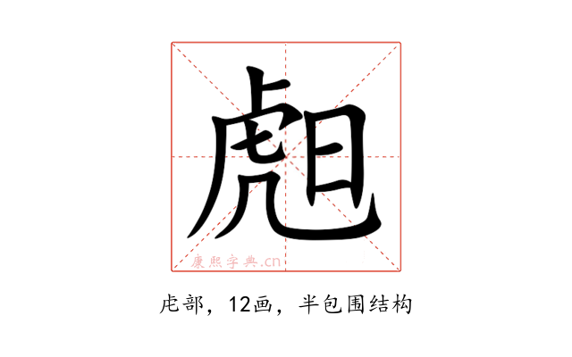 〔䖑〕字是半包围结构,可拆字为“虎、日”。