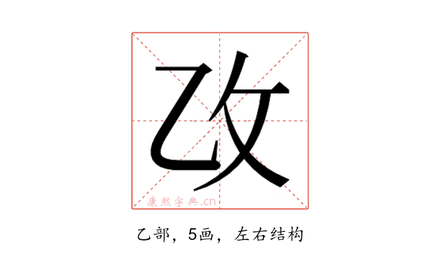 〔𫡣〕字是左右结构,可拆字为“乙、攵”。