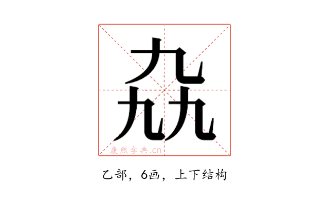 〔𫡤〕字是上下结构,三叠字 (三角三叠字),可拆字为“九、九、九”。