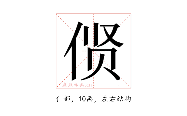 〔𫢲〕字是左右结构,可拆字为“亻、贤”。