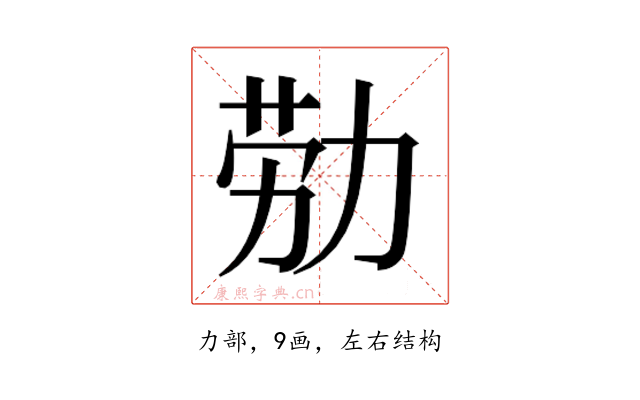 〔𫦰〕字是左右结构,可拆字为“劳、力”。