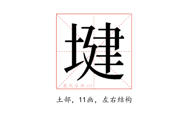 〔𫮑〕字是左右结构,可拆字为“土、建”。