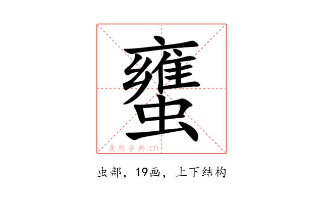 〔䗸〕字是上下结构,可拆字为“雍、虫”。