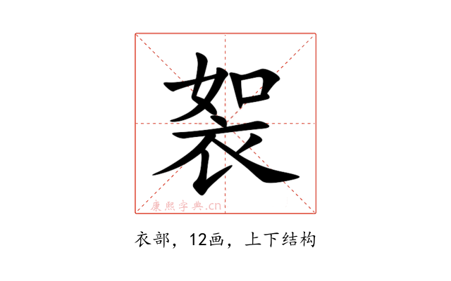 〔䘫〕字是上下结构,可拆字为“如、衣”。