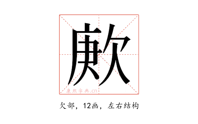 〔𬅪〕字部首是欠部,总笔画是12画。