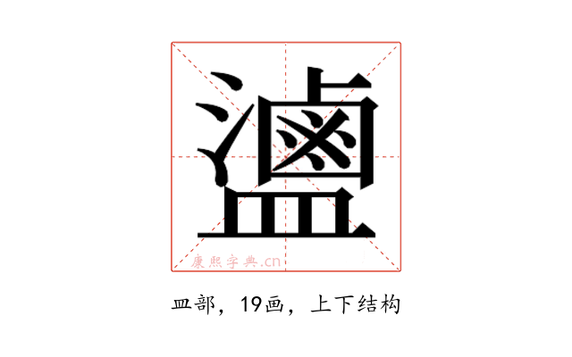 〔𬐻〕字部首是皿部,总笔画是19画。