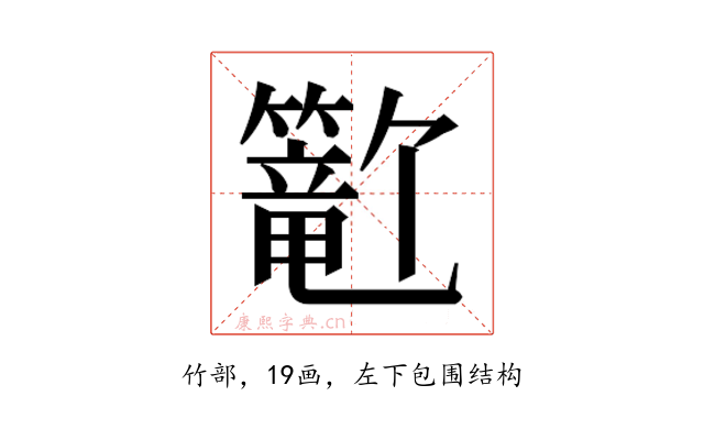〔𬕺〕字部首是竹部,总笔画是19画。