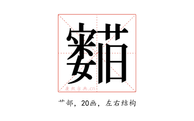 〔𬟛〕字部首是艹部,总笔画是20画。