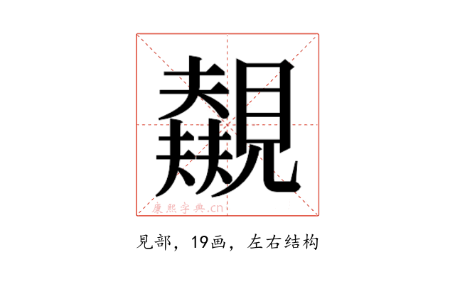 〔𬢃〕字是左右结构,三叠字 (含三叠字结构),可拆字为“夫、㚘、見”或“𠒶、見”。