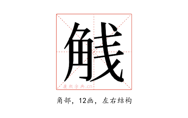 〔𬢕〕字是左右结构,可拆字为“角、戋”。