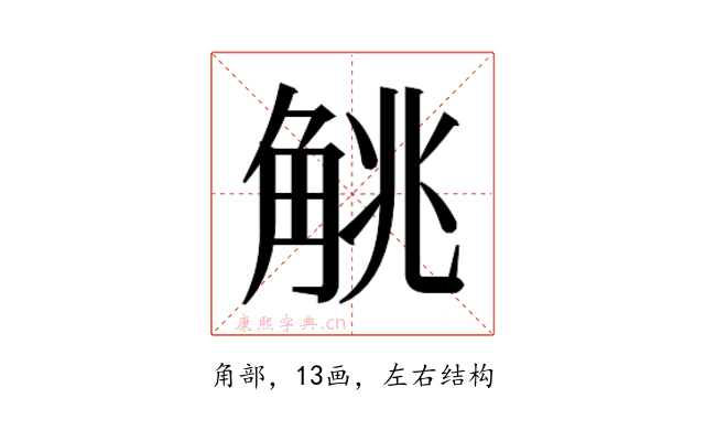 〔𬢖〕字是左右结构,可拆字为“角、兆”。