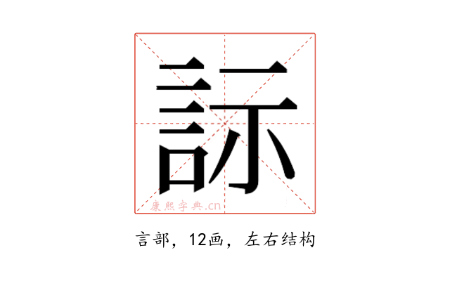 〔𬢡〕字是左右结构,可拆字为“言、示”或“訁、示”。