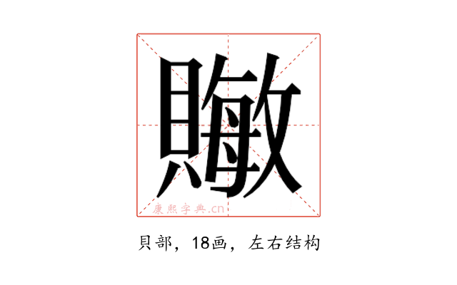 〔𬥧〕字是左右结构,可拆字为“貝、敏”。