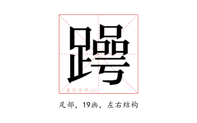 〔𬧒〕字是左右结构,可拆字为“𧾷、口、咢”或“𧾷、品、亏”。