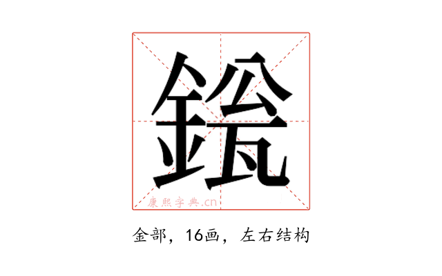 〔𬫱〕字是左右结构,可拆字为“金、瓮”或“釒、瓮”。