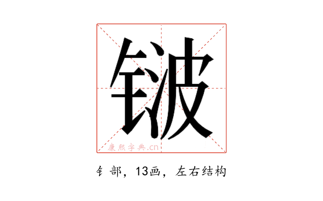 〔𬭛〕字是左右结构,可拆字为“钅、波”。