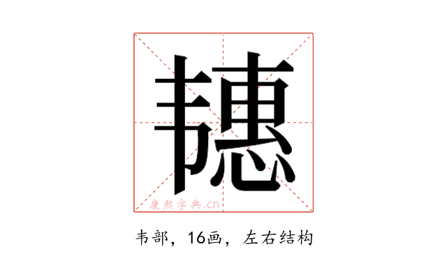 〔𬰶〕字是左右结构,可拆字为“韦、惠”。