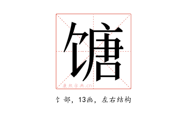 〔𬳍〕字是左右结构,可拆字为“饣、唐”。
