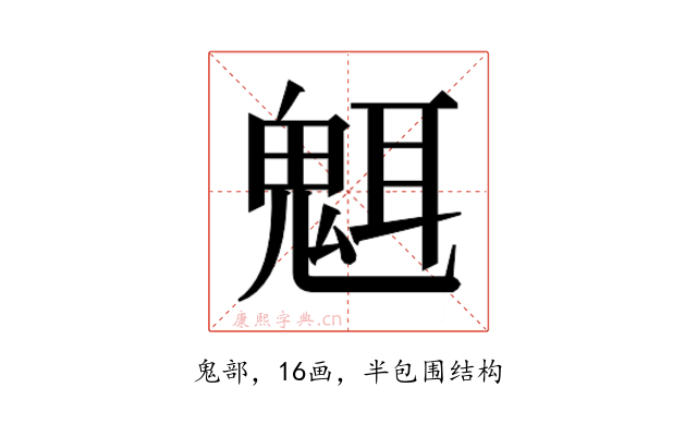 〔𬴿〕字部首是鬼部,总笔画是16画。