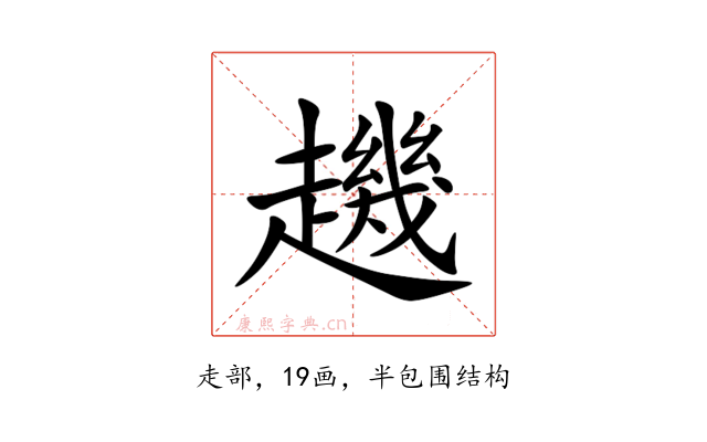 〔䟇〕字是半包围结构,可拆字为“走、幾”。