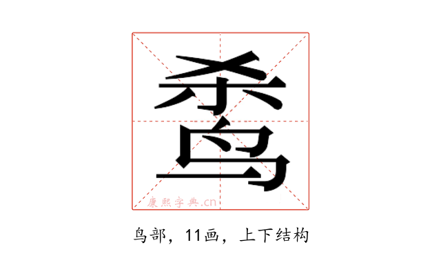 〔𬸌〕字是上下结构,可拆字为“杀、鸟”。