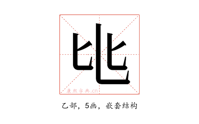 〔𬼚〕字是嵌套结构,可拆字为“匕、𪟨”或“比、乚”。