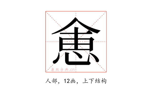 〔𬾽〕字是上下结构,可拆字为“人、恵”或“𠆢、恵”。