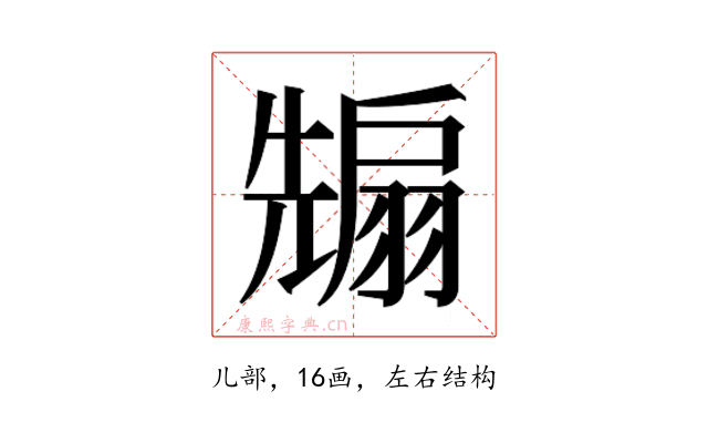 〔𭀵〕字部首是儿部,总笔画是16画。