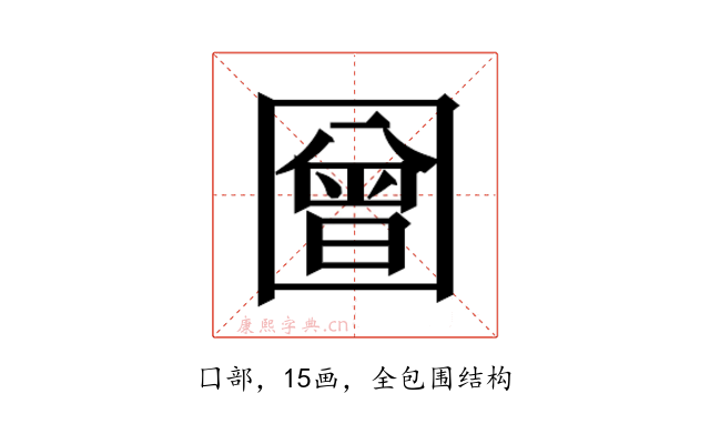 〔𭍳〕字是全包围结构,可拆字为“囗、曾”。
