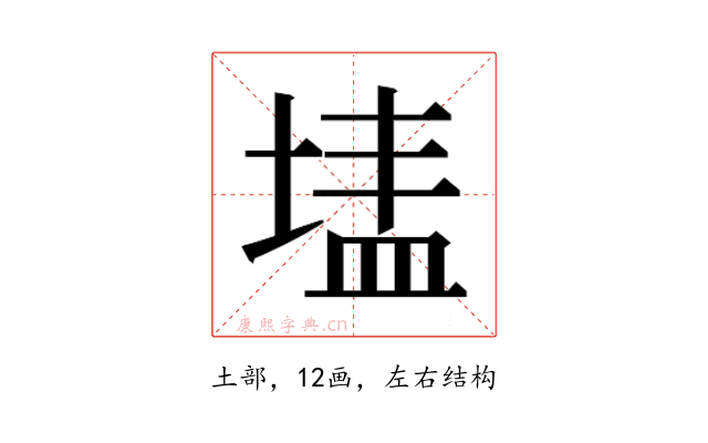 〔𭎷〕字是左右结构,可拆字为“土、丰、皿”。