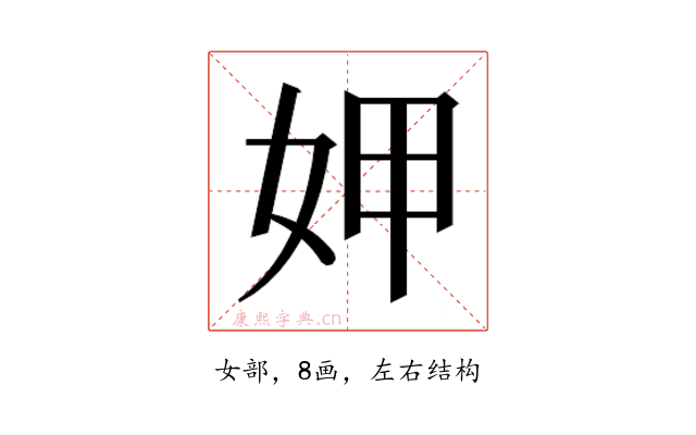〔𭑱〕字是左右结构,可拆字为“女、甲”。